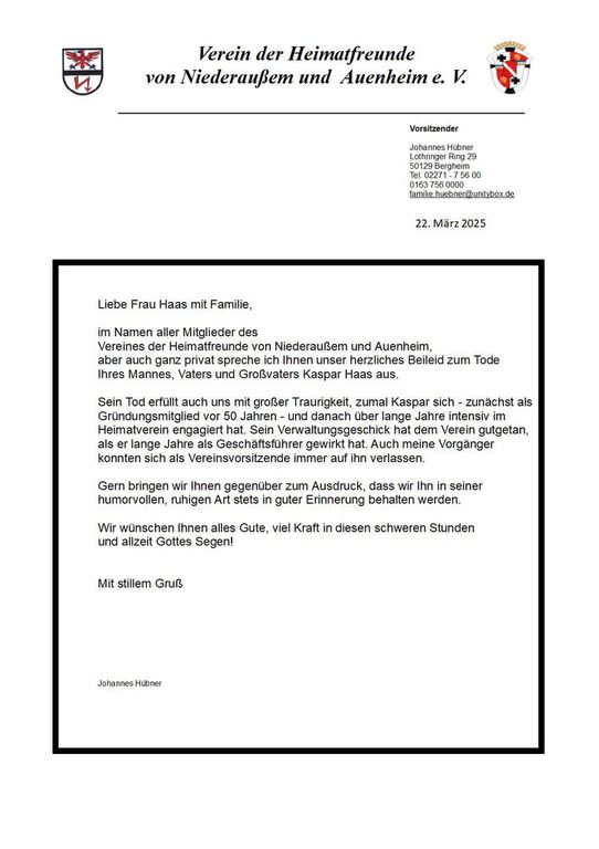 Norbert Esser hat dazu eine der ersten Veröffentlichungen des Heimatvereins Niederaußem/Auenheim